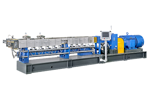 MTG系列雙螺桿全自動生產線是以平行同向雙螺桿為主要生產設備,失重式計量喂料為主要計量設備的連續(xù)法全自動生產線。原料通過計量系統(tǒng)自動地、連續(xù)地喂入雙螺桿主機中,物料在雙螺桿主機中完成分散、混煉、研磨、排氣、真空、反應等一系列程序,生產的產品連續(xù)地從雙螺桿設備中輸出,進入包裝設備包裝成產品。