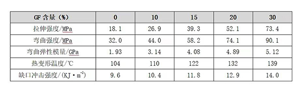 2、GF含量對PP-GF復(fù)合材料性能的影響